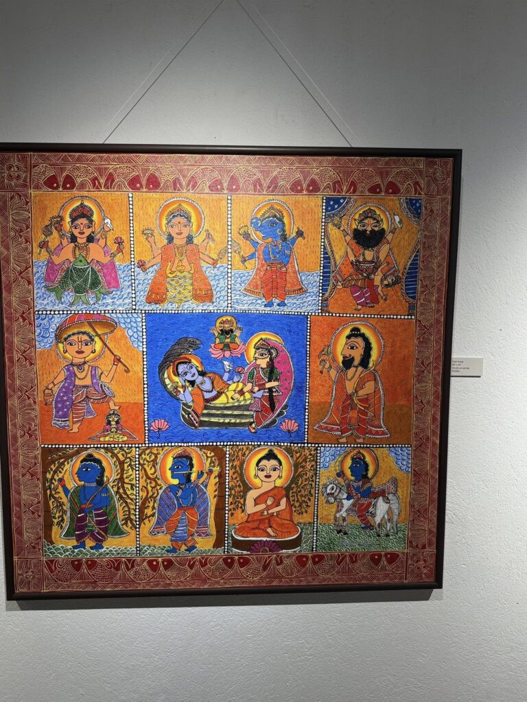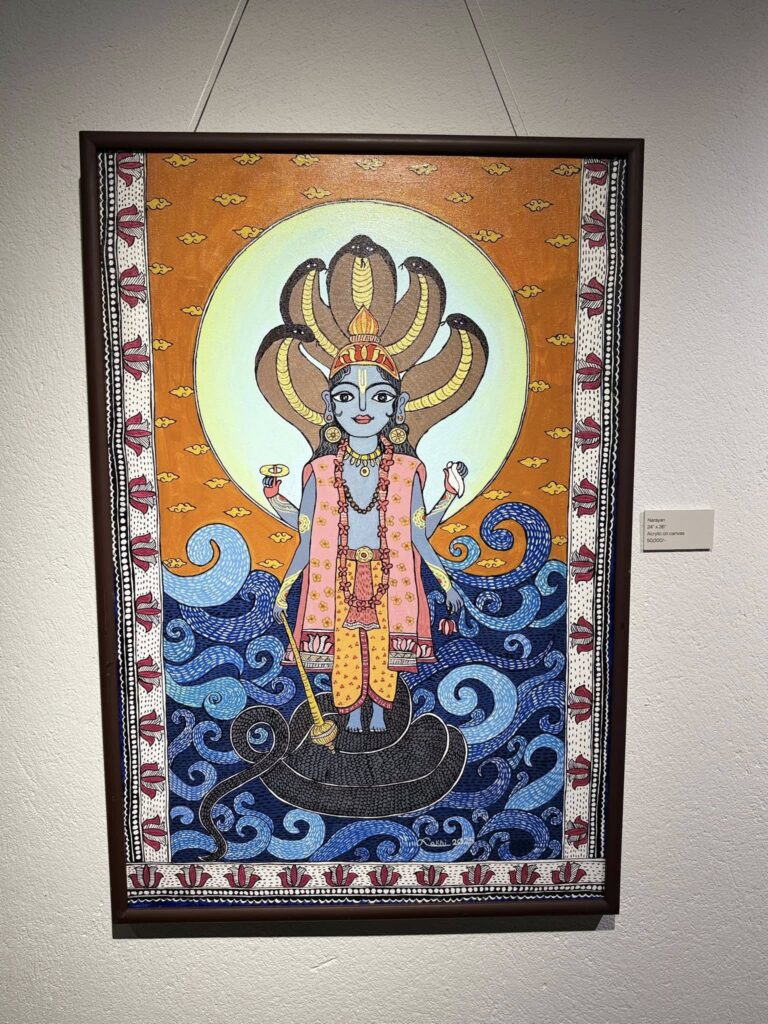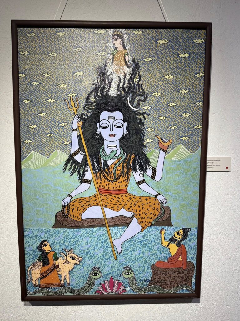 Being a folk based artist, I practice art by taking inspiration from mythology which defines our profound identity as well as my artistic space through which I seek to quest and explore my true existence. Each painting I create is a visual story, rich with symbolism and human connection. Figures in my artwork are not just decorative; they are narrators, conveying tales of gods, goddesses, birth, love, conflict, and peace—woven into the tapestry of everyday life. The cyclical nature of existence—from birth to death and rebirth—is a central theme that drives my creative process. I see this cycle not just in religious philosophy but also in the mundane, in festivals, rituals, and generational traditions.